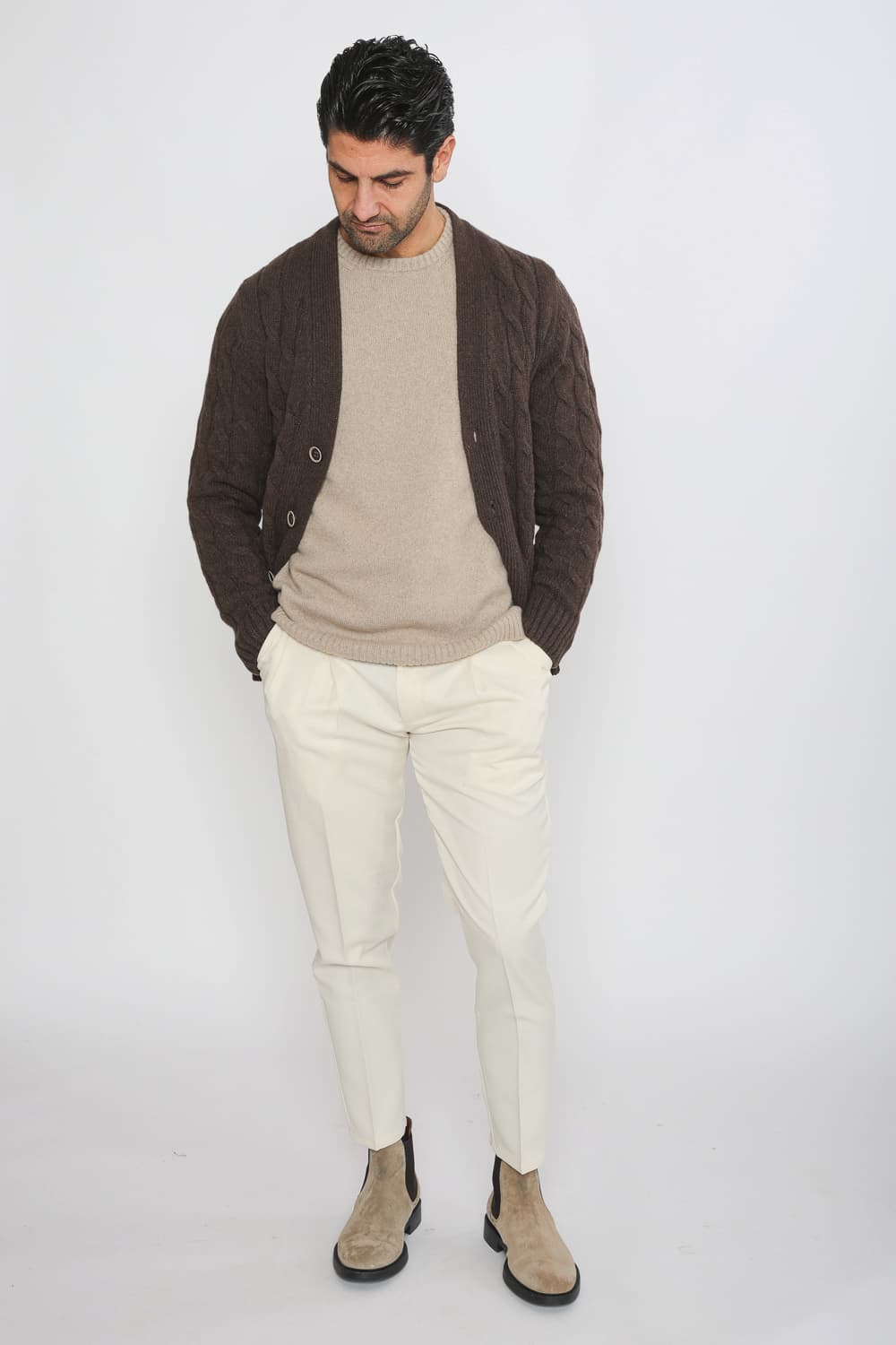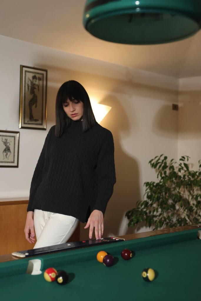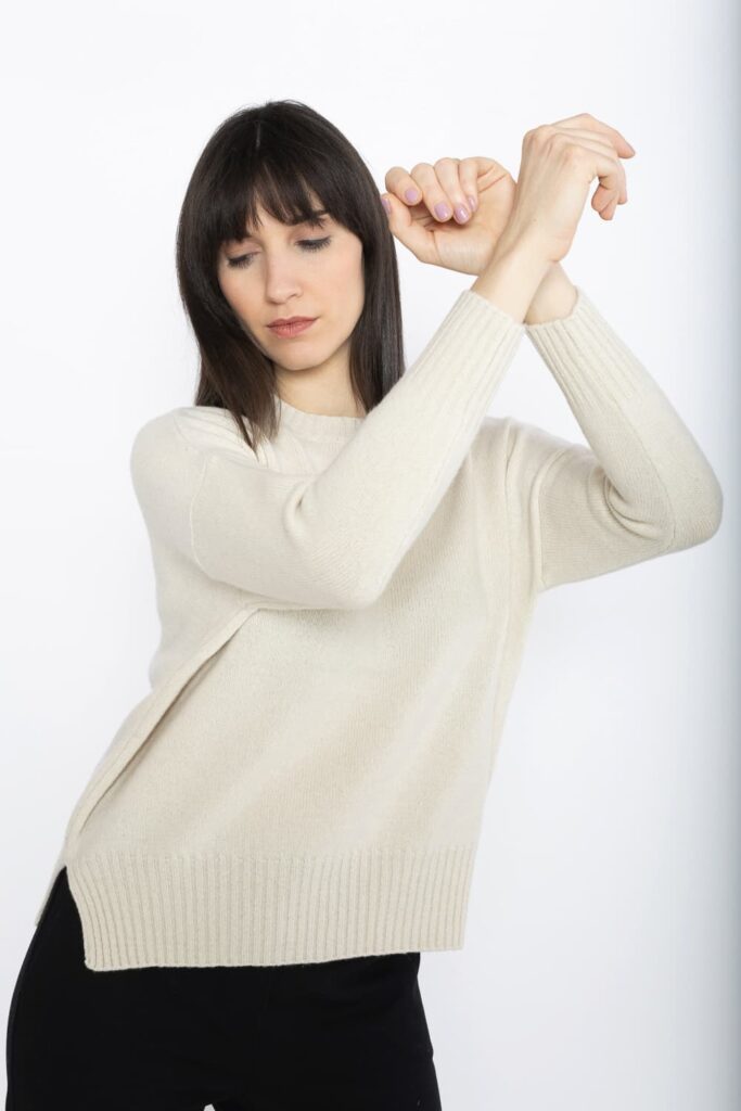 The certified GRS cashmere yarn used for our knitwear collection, is eco-friendly, as it is made from the recovery of fine textile fibers. It is not subjected to chemical bleaching or dyeing processes, and it contributes to a sustainable circular economy.